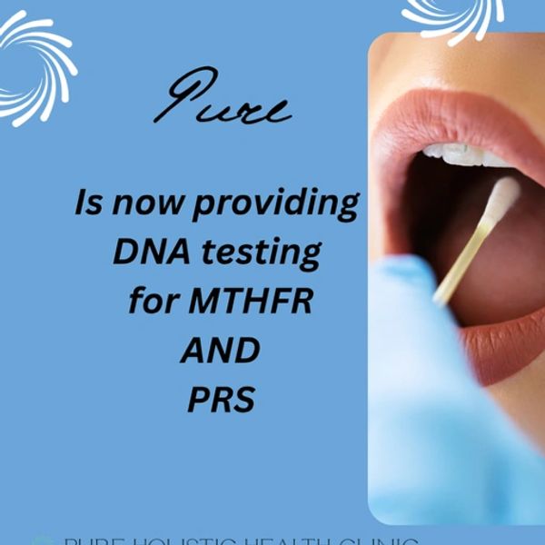 At Pure, we focus on preventative medicine and treating each person's unique health concerns. We are now offering affordable-DNA testing for MTHFR, a gene that affects how your body processes folate and detoxifies, and PRS (Polygenic Risk Score), which helps identify your genetic predisposition to health conditions like heart disease, diabetes, and more.